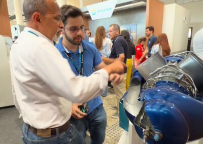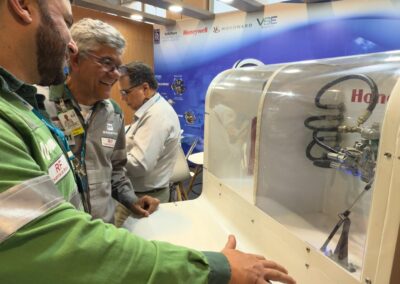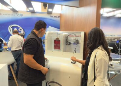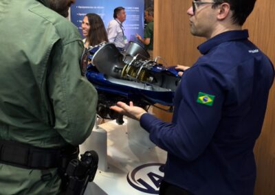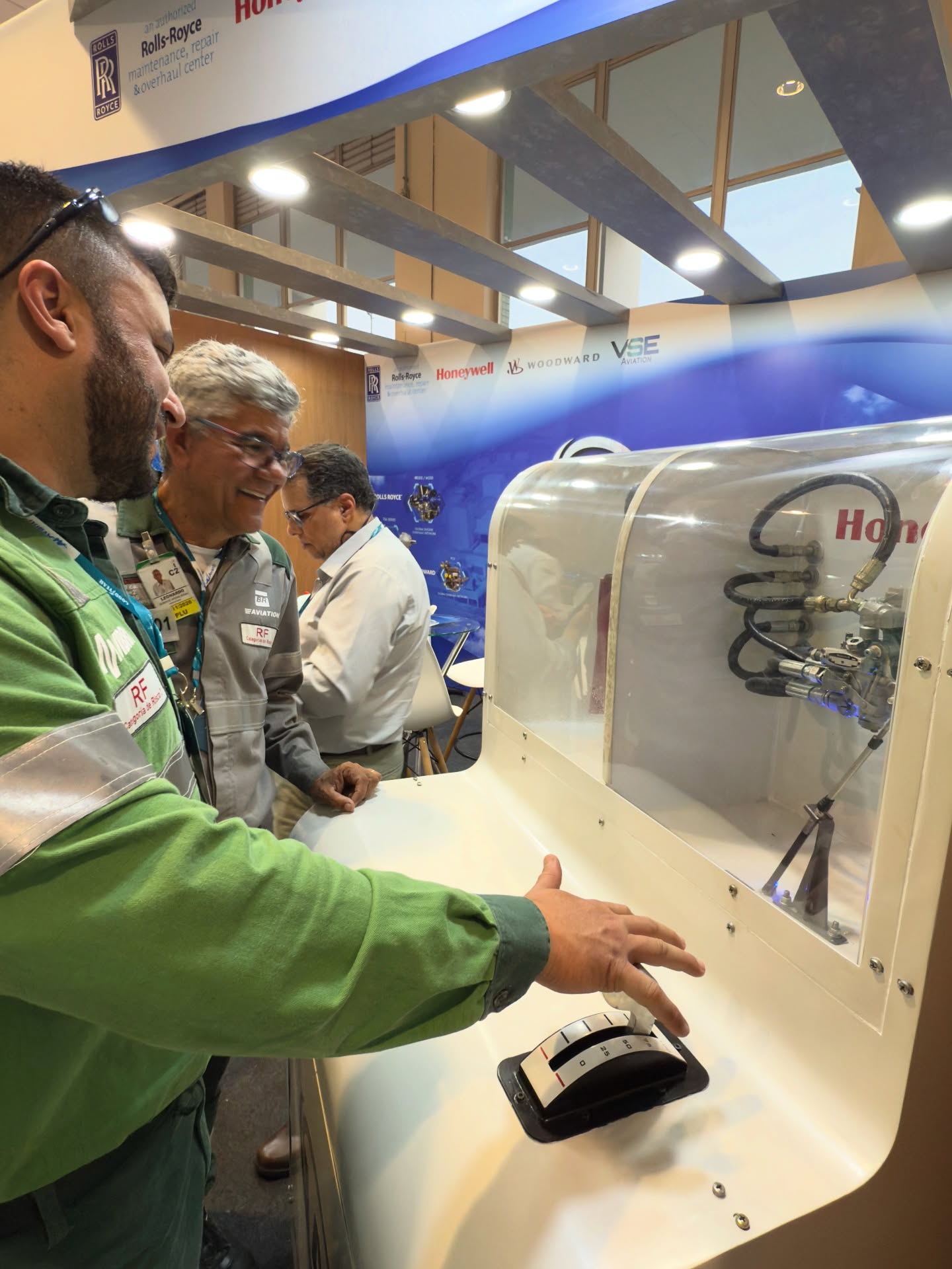 Em nosso estande, recebemos representantes do governo, parceiros, convidados da sociedade civil e clientes, que puderam conhecer de perto os motores Rolls-Royce M250 e T56. Os visitantes também tiveram a oportunidade de interagir com um simulador de controlador de combustível (FCU), vivenciando, na prática, como funciona o motor quando da cabine de comando o piloto precisa aumentar a potência.